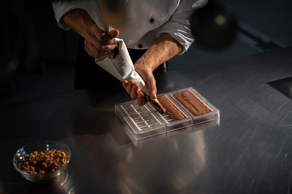 Panettone con gocce di cioccolato bianco al caramello, glassato